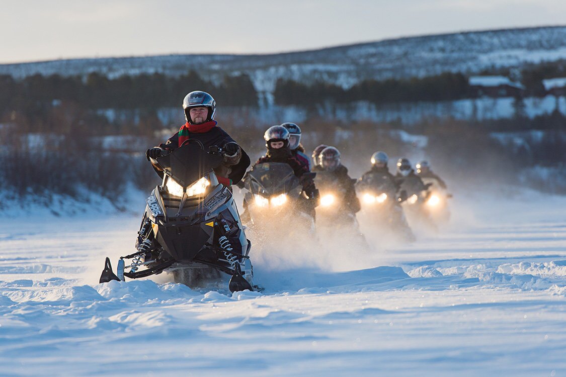 Når alle er klare og pakket inn i mange lag med varme klær, vil våre erfarne guider instruere deg om hvordan du bruker snøscooteren. Du bestemmer selv om du vil starte som sjåfør eller som passasjer bak en av vennene dine. Snart suser vi vekk fra landsbyen og ut i den enorme vintervillmarken!