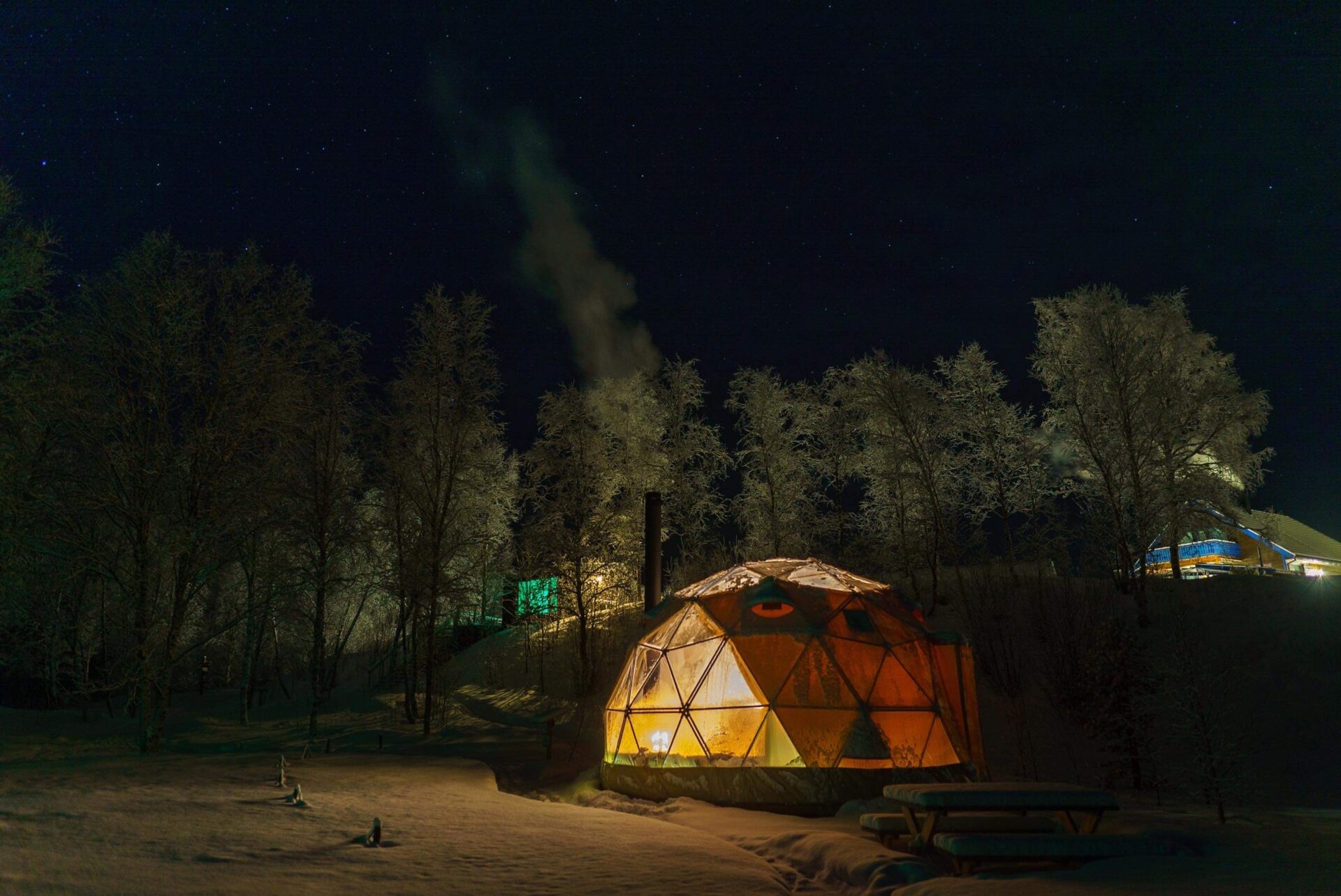 Inkludert: En uforglemmelig overnatting, frokost levert i domen, mye fyringsved, utendørs bålplass, inngang til «Oase av ro».