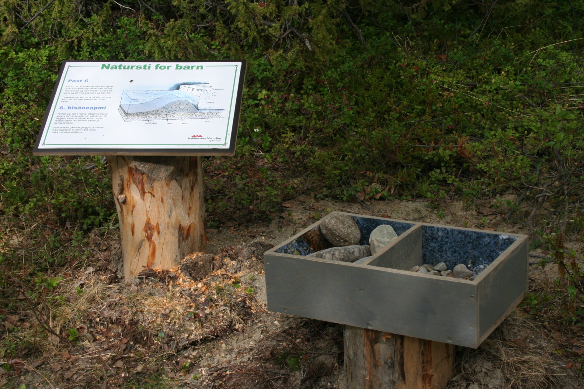 Uteområdet er tilrettelagt med gamme, lavvo og bålplass. Fra senteret starter to naturstier, en for barn på ca 1 km, og en lengre på ca 6,5 km rundt Stabbursneset.